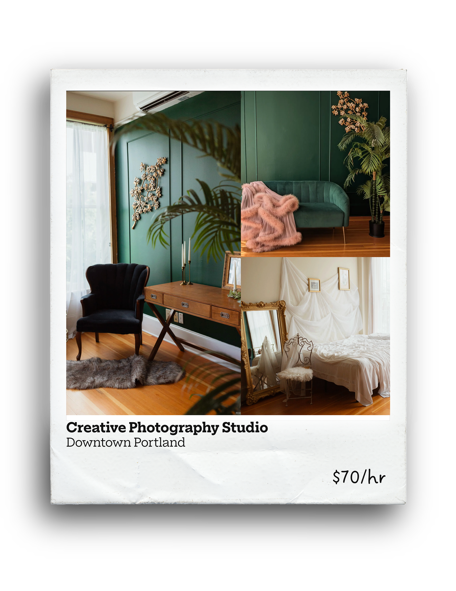 Glam, light-filled boudoir studio in Portlandโs Pearl District with city views, exposed brick, and a real fire escape for iconic shots.